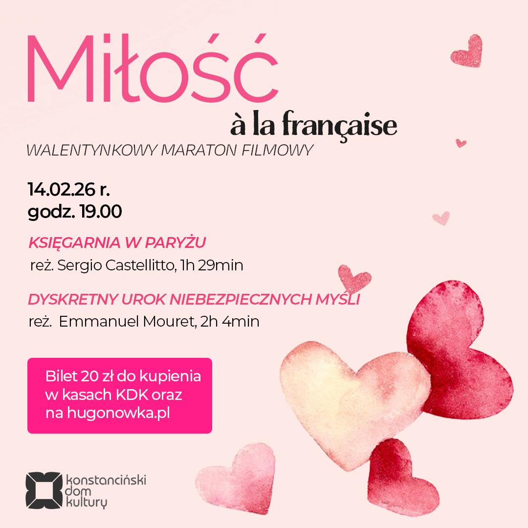 14 lutego o godz. 19.00 Konstanciński Dom Kultury zaprasza na „Miłość à la française – Walentynkowy Maraton Filmowy”.