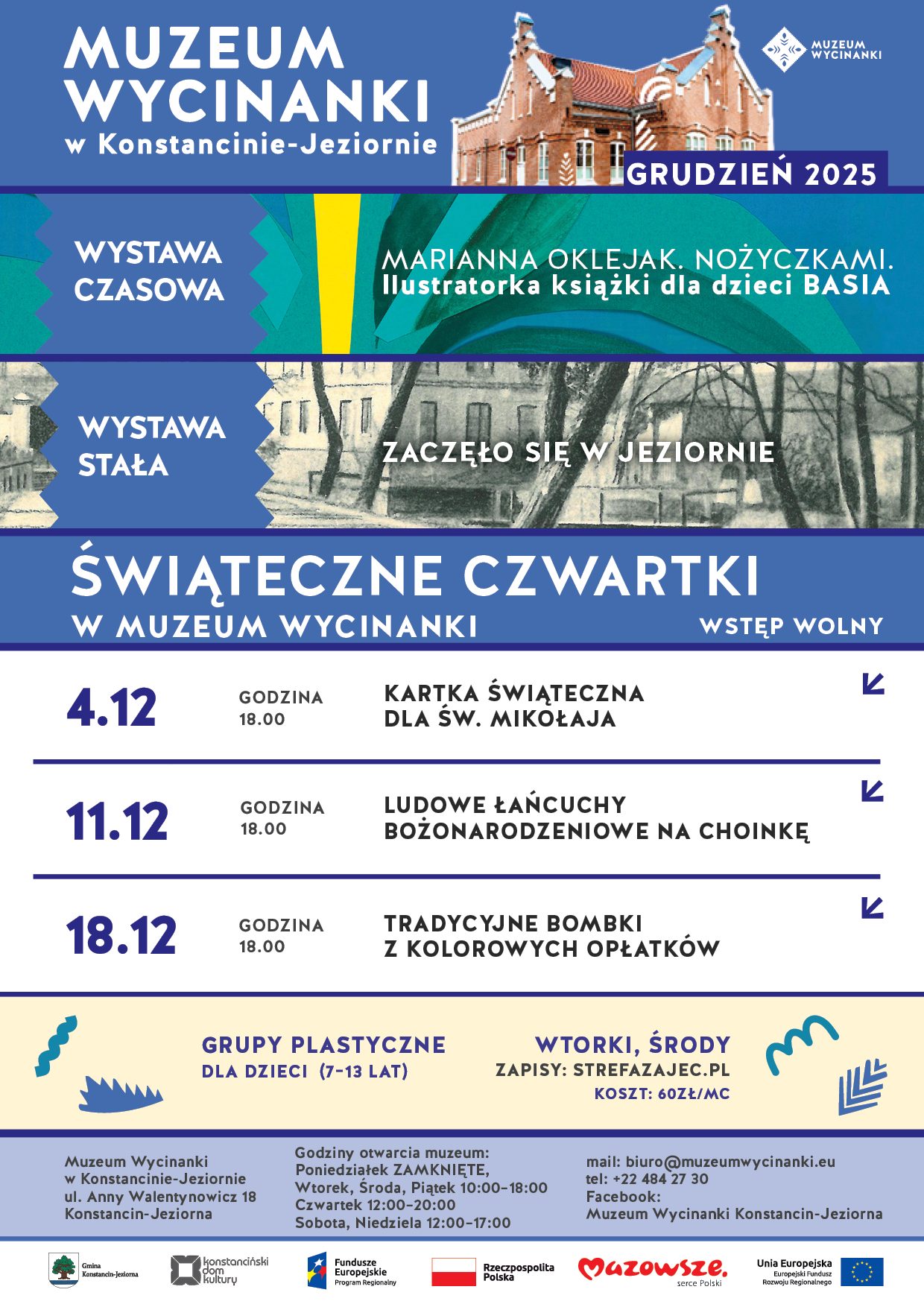 Tym razem uczestnicy wykonają ludowe łańcuchy ze słomy oraz inne tradycyjne ozdoby bożonarodzeniowe z kolorowego papieru. Zajęcia poprzedzi krótka gawęda etnografa, połączona z prezentacją dawnych dekoracji choinkowych – tych, które zdobiły wiejskie domy na długo przed pojawieniem się bombek.