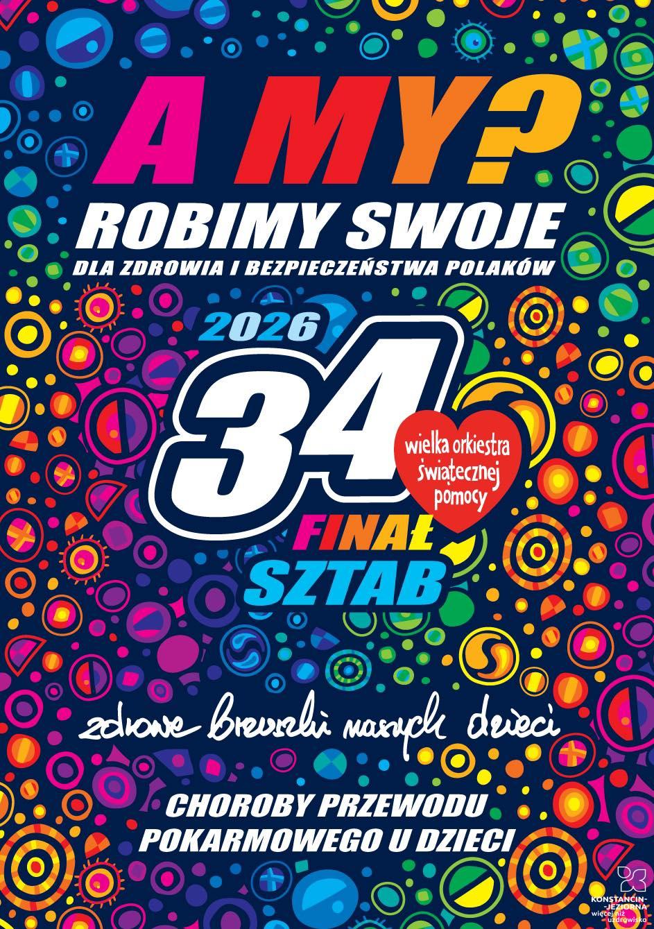 „Zdrowe brzuszki naszych dzieci” – to hasło 34. finału Wielkiej Orkiestry Świątecznej Pomocy. W niedzielę (25 stycznia) w całej Polsce będzie kwestować około 120 tysięcy wolontariuszy w 1681 sztabach. Spotkamy ich także na ulicach Konstancina-Jeziorny. Celem tegorocznej akcji jest zebranie funduszy na diagnostykę i leczenie chorób przewodu pokarmowego u najmłodszych pacjentów.