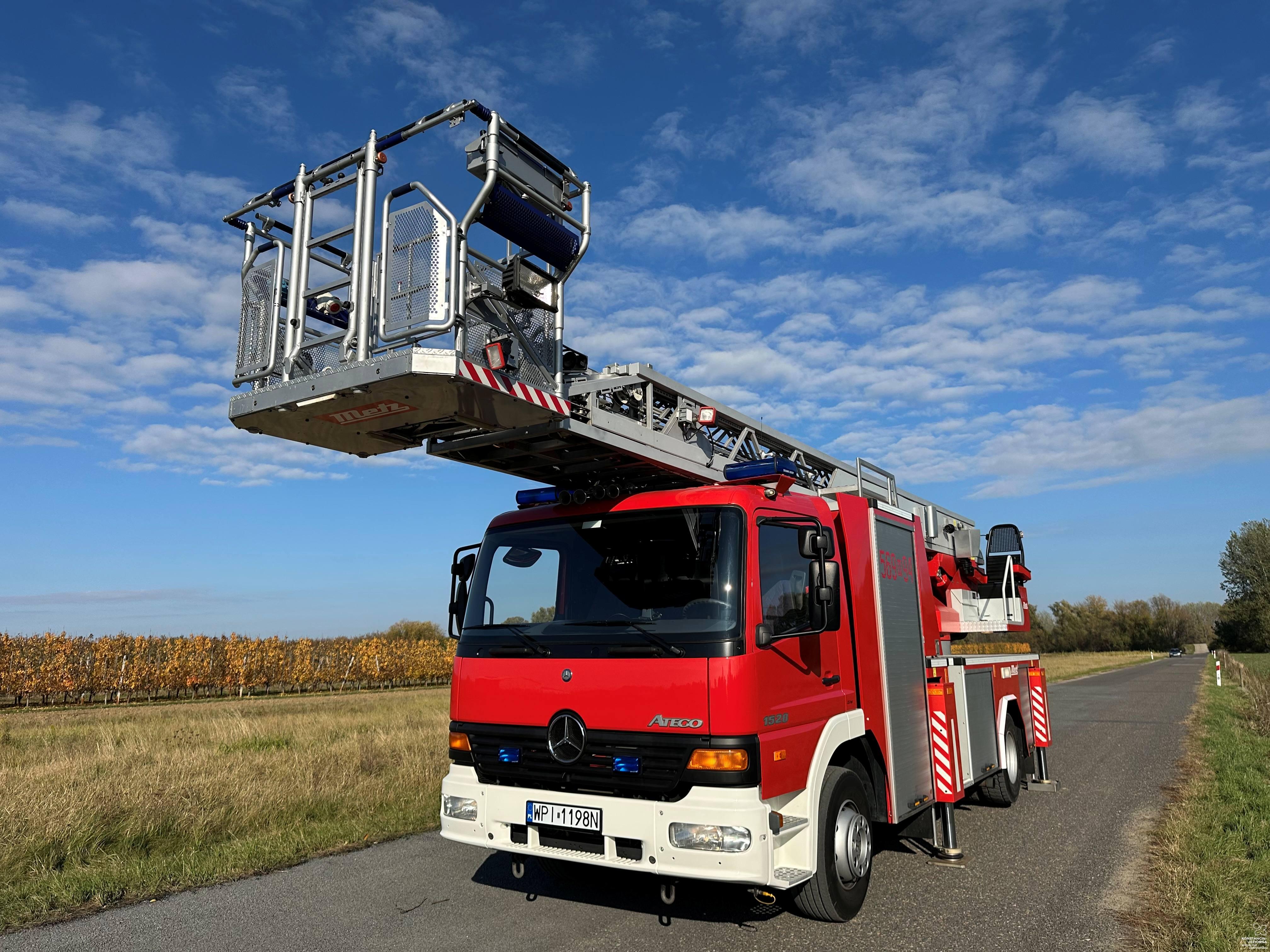 Choć samochód został wyprodukowany w 2005 r., jego stan – zarówno wizualny, jak i techniczny – sugeruje, że dopiero co opuścił linię produkcyjną. Wcześniej służył w jednostce OSP w Niemczech, jednak był użytkowany wyjątkowo sporadycznie, na co wskazują m.in. niski przebieg oraz niewielka liczba motogodzin. – Drabina ma wysięg 31 metrów i wyposażona jest w 3-osobowy kosz ratowniczy z możliwością montażu działka wodno-pianowego, wentylatora oddymiającego oraz noszy do ewakuacji poszkodowanych – wyjaśnia Łukasz Korytek. – Nowoczesny system CAN-Industry umożliwia precyzyjne sterowanie za pomocą dwóch joysticków, a parametry pracy są wyświetlane na monitorach zarówno w koszu, jak i na obrotnicy.