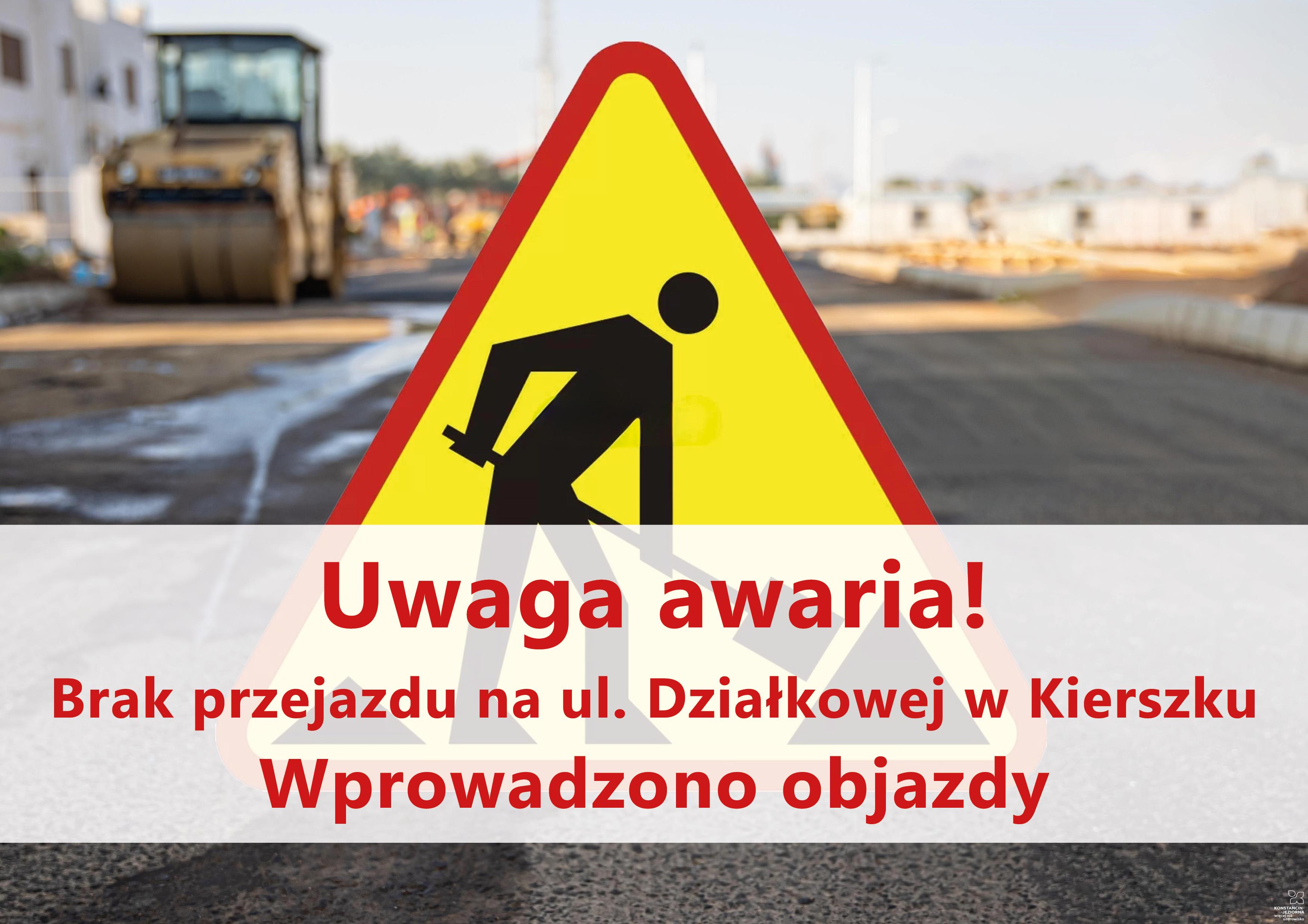 Uwaga, mieszkańcy! Brak przejazdu na ul. Działkowej w Kierszku. Wykonawca budowy sieci wodno-kanalizacyjnej w tym rejonie – firma IBF Sławomir Dymowski – poinformował o awarii, do której doszło podczas prowadzonych prac. Droga jest tymczasowo nieprzejezdna. Wprowadzono objazdy.