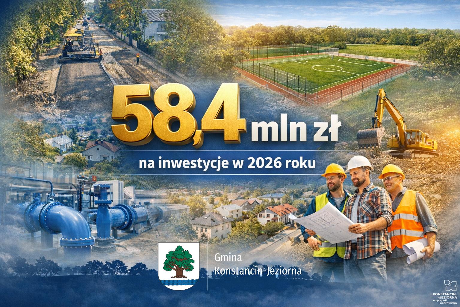 Ponad 58,4 mln zł – tyle na inwestycje przeznaczy w tym roku gmina Konstancin-Jeziorna. Samorząd zaplanował realizację blisko 100 zadań – od rozwoju infrastruktury drogowej i wodno-kanalizacyjnej, przez budowę i modernizację obiektów użyteczności publicznej, po zakupy sprzętowe. Wszystko z myślą o poprawie jakości życia mieszkańców.