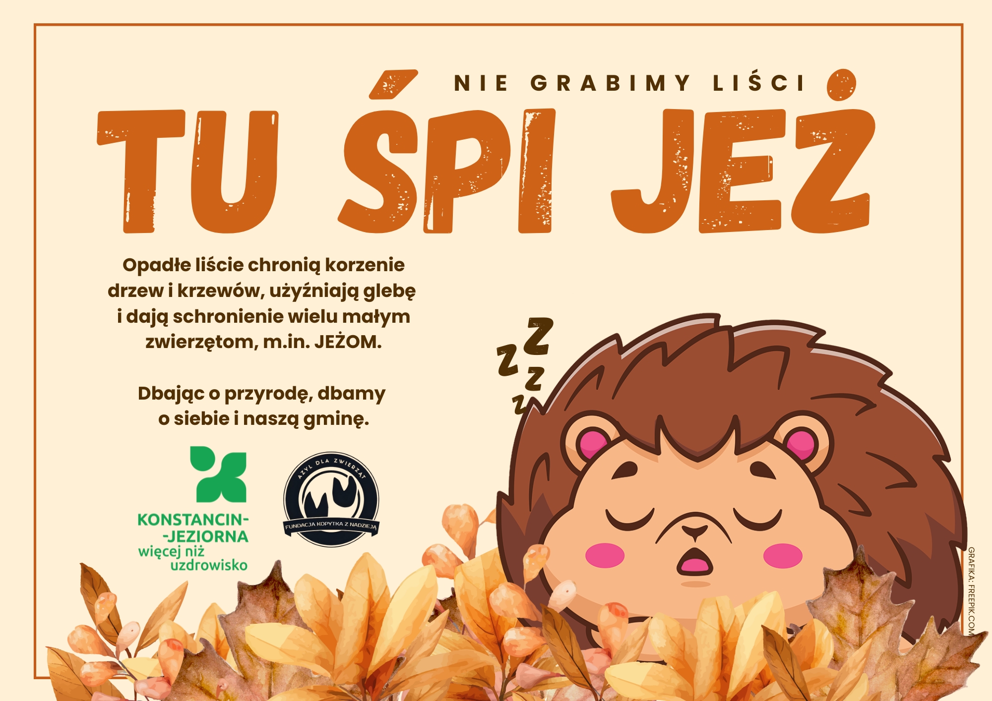 Z tej okazji w najbliższych dniach w Parku Zdrojowym pojawią się kopce z liści oznaczone tabliczkami „Tu śpi jeż”, przygotowanymi przez gminę Konstancin-Jeziorna. Takie tabliczki trafią również do gminnych przedszkoli i szkół, aby najmłodsi mogli lepiej poznać i chronić swoich kolczastych sąsiadów.