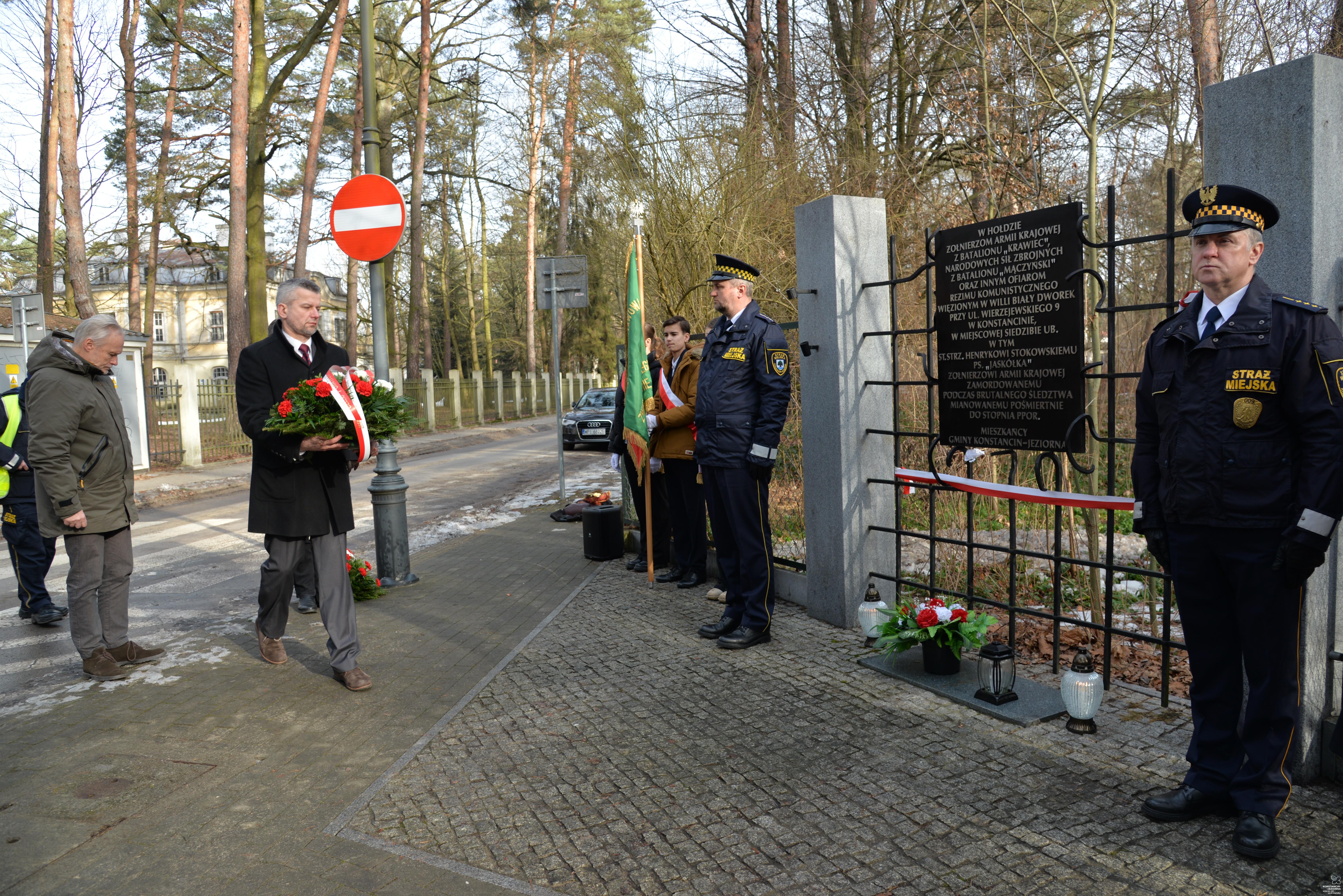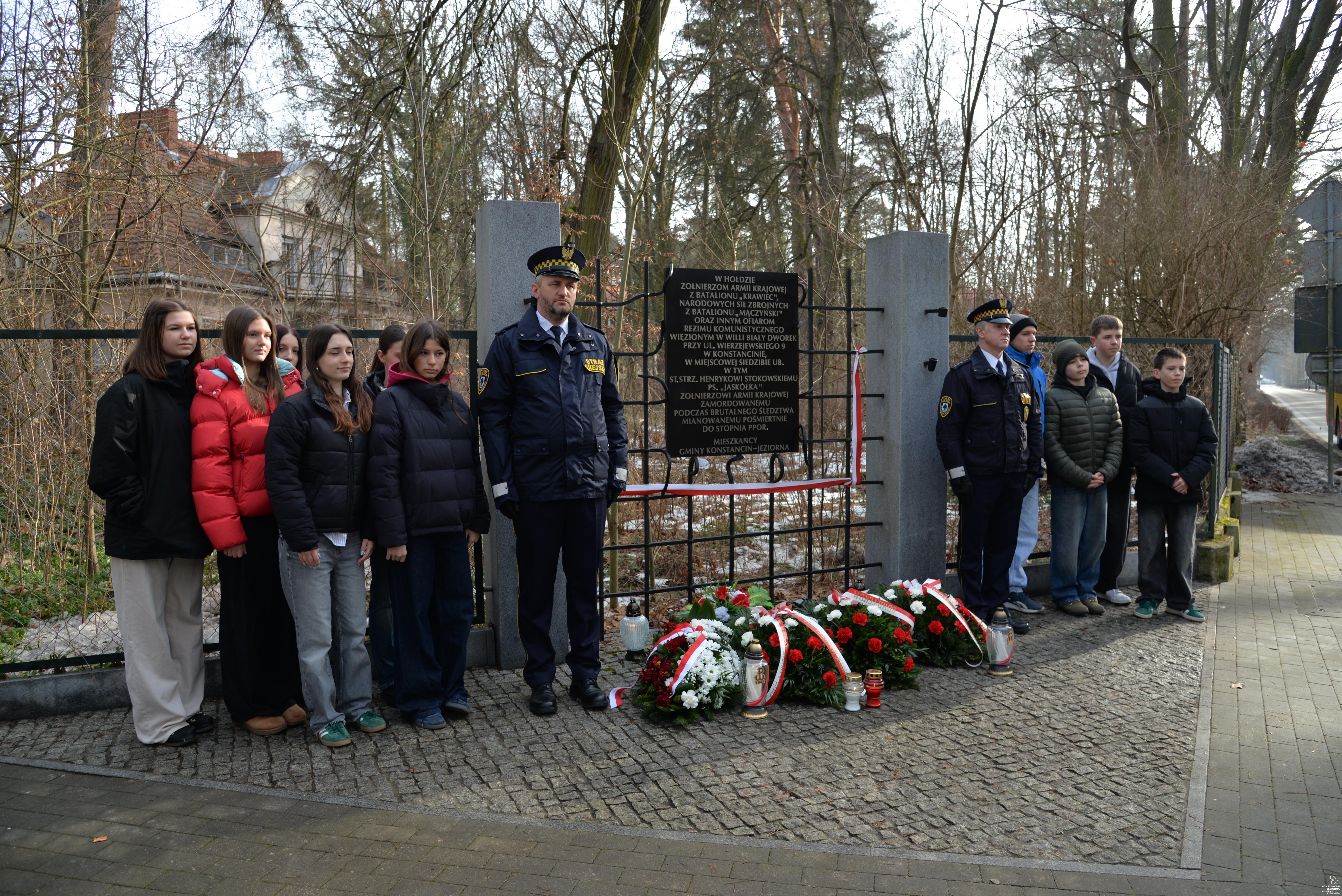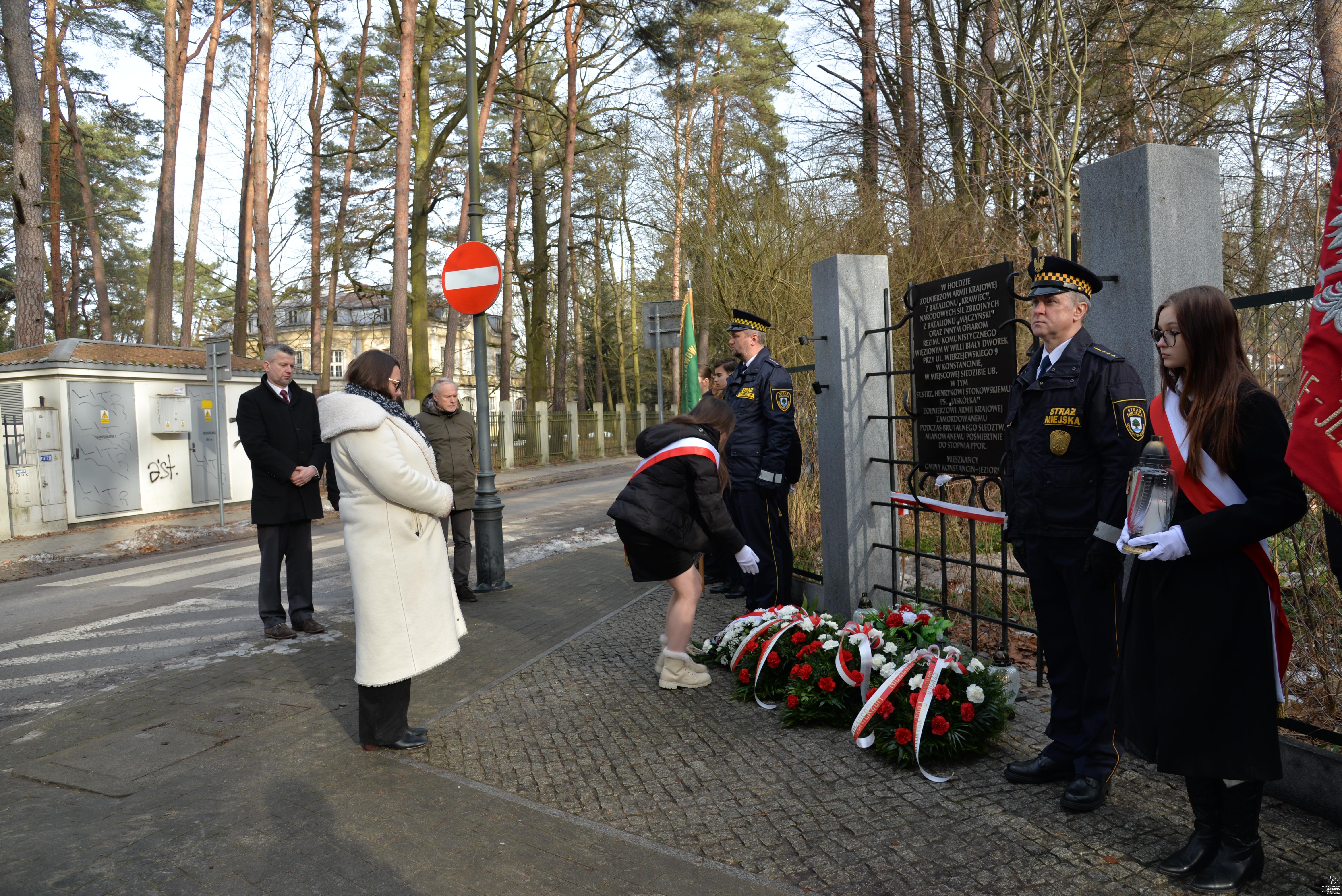 Na zakończenie złożono kwiaty i zapalono znicze. Hołd oddali zastępca burmistrza Piotr Napłoszek, przedstawiciele Rady Seniorów, oraz delegacje szkół podstawowych nr 1, 2 i 5. W uroczystości uczestniczyły także poczty sztandarowe.