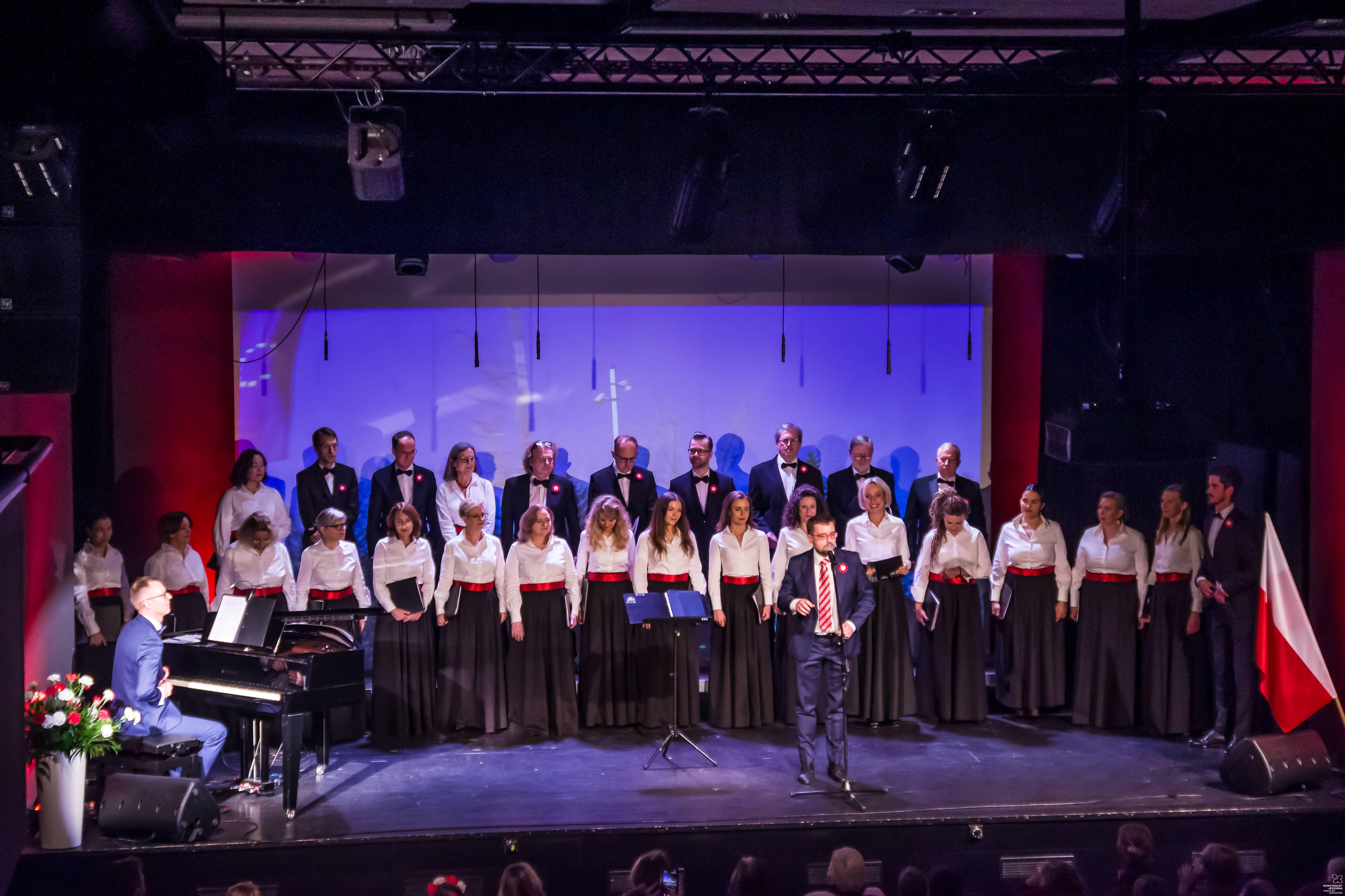 Na zakończenie obchodów w Konstancińskim Domu Kultury Hugonówka odbył się koncert Konstancińskiego Chóru Kameralnego pod dyrekcją Franciszka Kubickiego, zatytułowany „Niepodległość – Nasza Wolność”. Publiczność wysłuchała poruszających, wojennych pieśni, które przez lata dodawały Polakom otuchy i towarzyszyły im w walce o wolność. Koncert wzbogacił rys historyczny przygotowany przez Witolda Rawskiego, a zwieńczeniem wieczoru był słodki akcent – tort przygotowany specjalnie na finał gminnych uroczystości. Dziękujemy, że byliście tego dnia z nami.