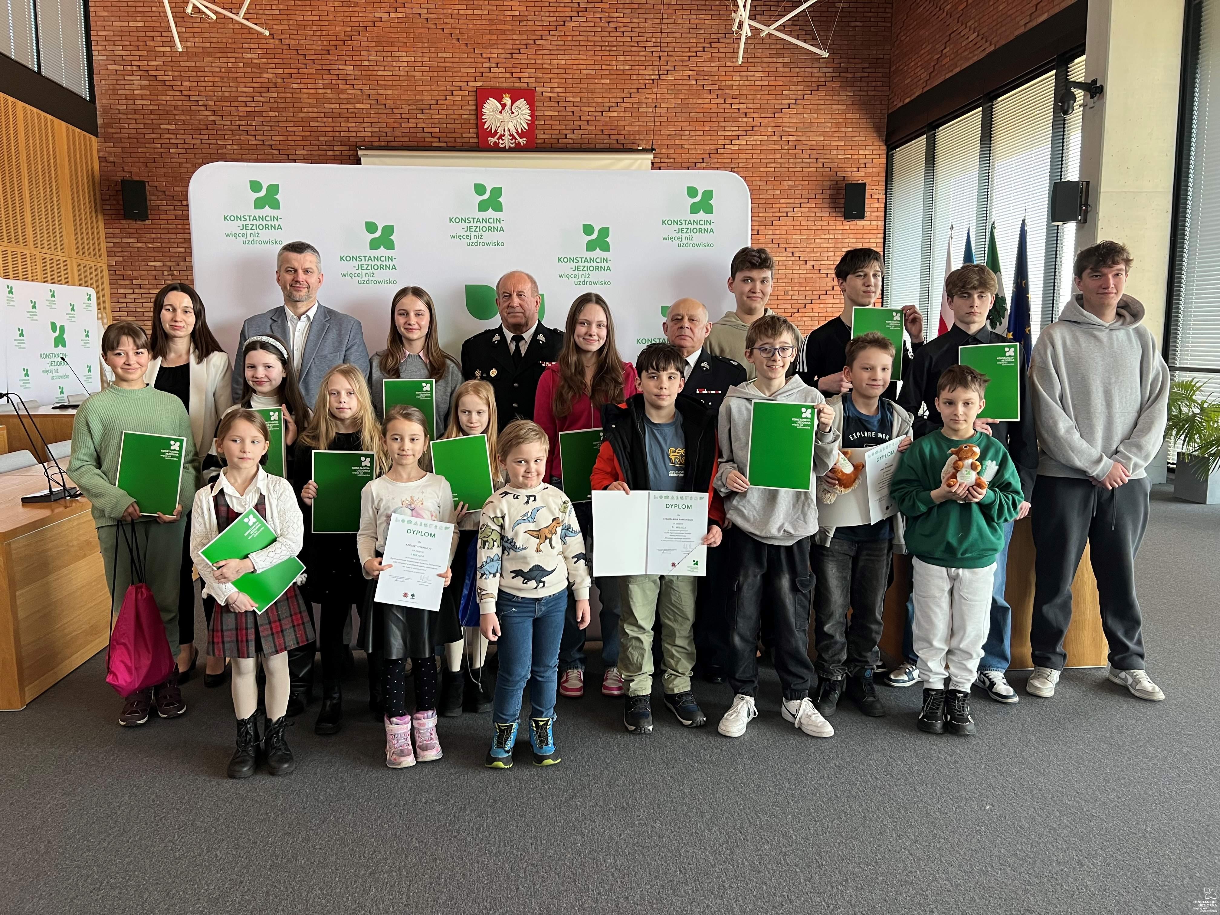 Dwudziestu uczniów z konstancińskich przedszkoli i szkół zostało nagrodzonych w strażackim konkursie plastycznym oraz turnieju wiedzy pożarniczej. Najlepsi wywalczyli awans do etapów powiatowego i wojewódzkiego. Uroczyste wręczenie upominków i dyplomów odbyło się w czwartek (26 lutego) w magistracie.