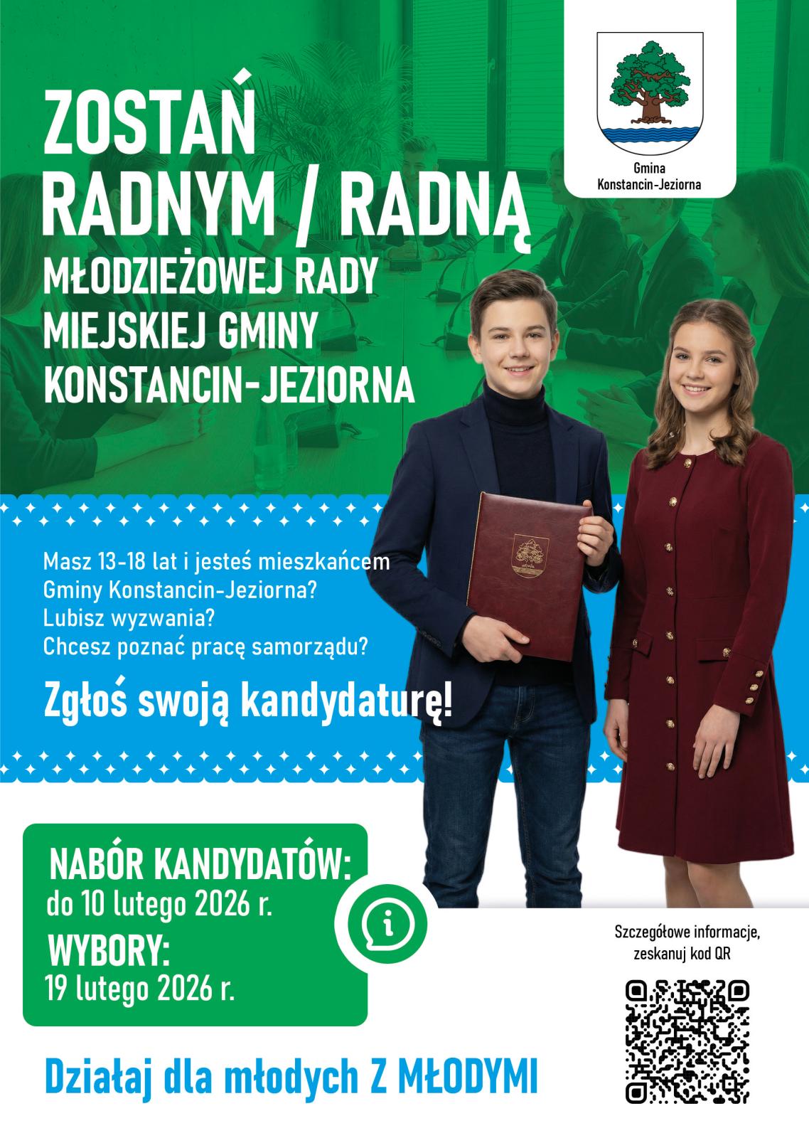 Teraz przyszedł czas na jej realizację. W poniedziałek (12 stycznia 2026 r.) Michał Wiśniewski, burmistrz Konstancina-Jeziorny, wydał zarządzenie w sprawie ogłoszenia wyborów do Młodzieżowej Rady Miejskiej, które odbędą się 19 lutego br., oraz rozpoczęcia naboru kandydatówzgłoszenia przyjmowane będą do 10 lutego br.